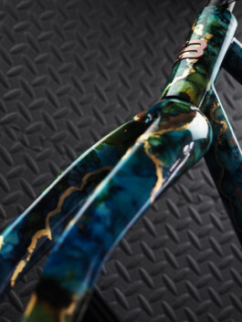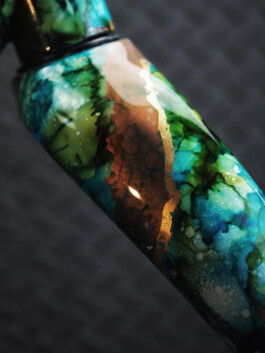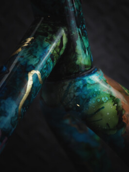 La proposition visuelle de mon client ressemblait fort à de l'hydrodipping. Étant donné que je n'ai pas (encore) ce qu'il faut pour exploiter cette technique, je lui ai rapidement proposé de travailler avec des encres à alcool. Je lui ai rapidement montré ce qu'il était possible de faire et l'idée l'a séduit. J'ai ensuite eu la chance d'avoir sa confiance et de pouvoir laisser libre cours à mes idées.