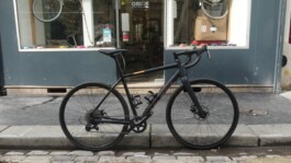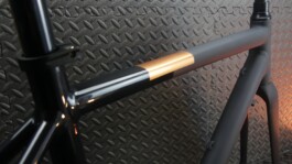 Charlotte ne savait pas forcément avec précision vers quoi se diriger, mais elle savait qu'elle voulait un vélo sobre, dans des tons plutôt sombres, avec juste une petite touche de couleur. On est donc parti sur un noir nacré de chez Didspade en jouant sur deux types de vernis – mat et brillant – et pour la touche colorée, c'est finalement une peinture cuivre de chez Stardust Colors qui l'a remporté, après quelques hésitations !